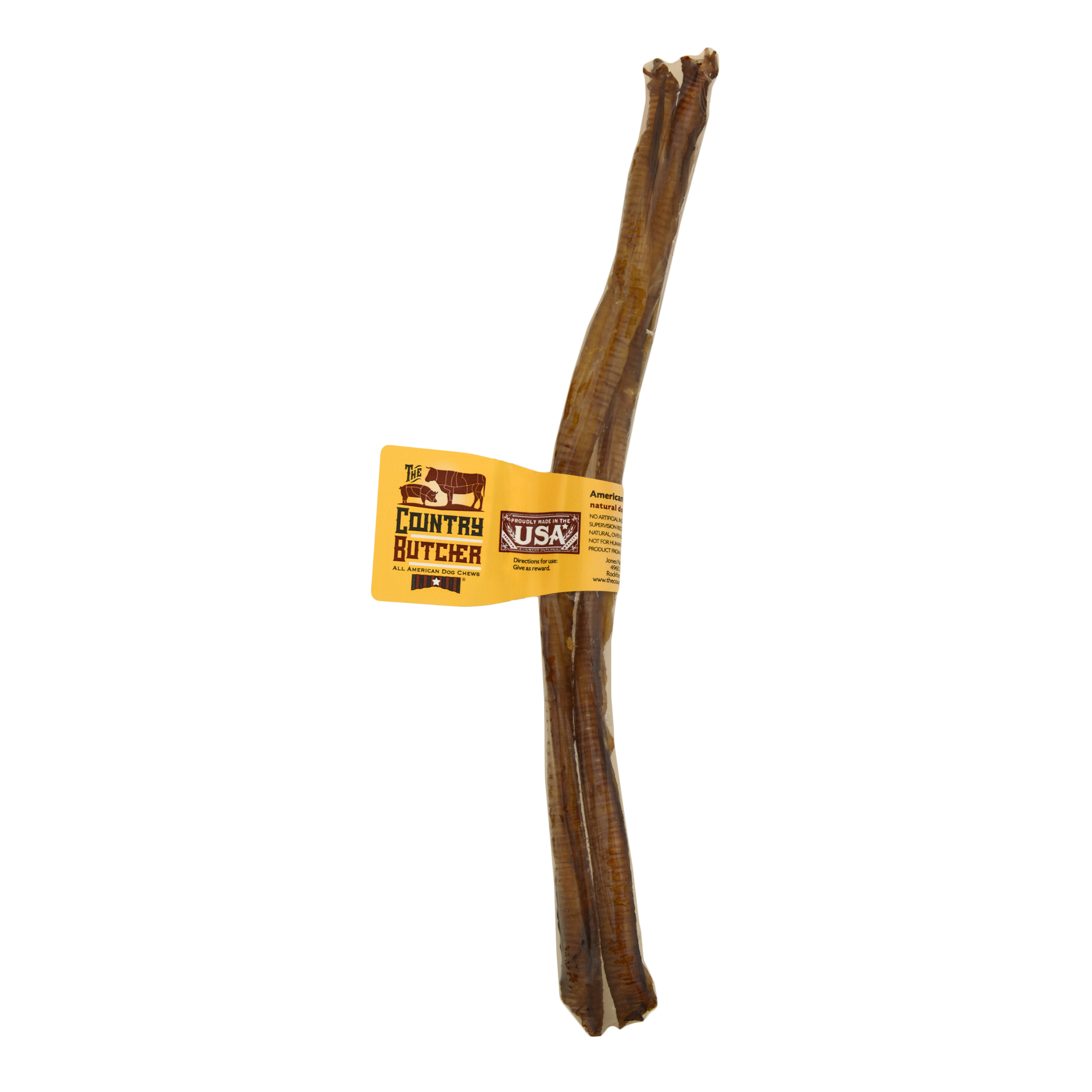 Turkey Windees are made from the trachea of a turkey raised on a USA farm. They have been slow-roasted for a tasty flavor and are completely digestible. These make a very light chew, with a slightly crisp texture, they offer a unique chewing experience. They are appropriate for dogs of any size but will last longer for a small and light chewer. The large cut range from 10 – 12″. All Country Butcher products are raised and handcrafted in the USA and responsibly sourced.